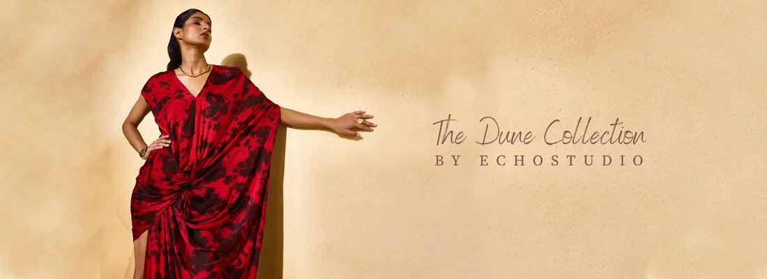 Imagine bias-cut dresses, fierce minis, and ruffled tops — all comfy enough for Netflix binges and hot enough to turn heads at the club. Delhi-based brand Echo Studio is nothing short of a total slag fest, talking bold-colour blocking with contrasting threads that scream 'extra'. Tanya Arora's label is your one-stop shop for drool-worthy looks.