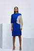 The Blue Beige Regenerate dress is an elegant and artistic piece with a flattering silhouette. The dress features an elastic waist for a comfortable fit and unique sleeves—one side flowing from the dress and the other in a contrasting color. The distinctive color combination and thoughtful design elements create a striking look. Crafted from Imported satin with high-quality fabrics and finishing techniques, this versatile dress is perfect for an evening out. Accessorize it your way for a stylish and comfortable ensemble, making it a true investment piece.