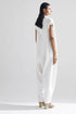 The White lily jumpsuit is cut in one piece . the cut drape and style of this piece is absolutely unique and free falling . the cloth has been draped around the body to create a comfortable shape. the zipper on the back makes it easy to wear and move in . the garment is loose fitting yet makes a falls in a flattering way . this piece is crafted in luxurious cotton . the collar on the neck and added details on the sleeves add structure to the piece. the fall in the front is absolutely stunning . it is an off duty piece with an element of style and comfort . you know you want this one the moment you lay your eyes on it.