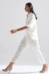 Echo white silk pants are cut in pure silk . the pants are cropped with side pockets. the fall is fitted and straight . the fabric is breathable and light . the pants are comfortable for summers. the garment has a great finish . you can team it up with our white lily top . style it up with heels or flat and you are good to go .