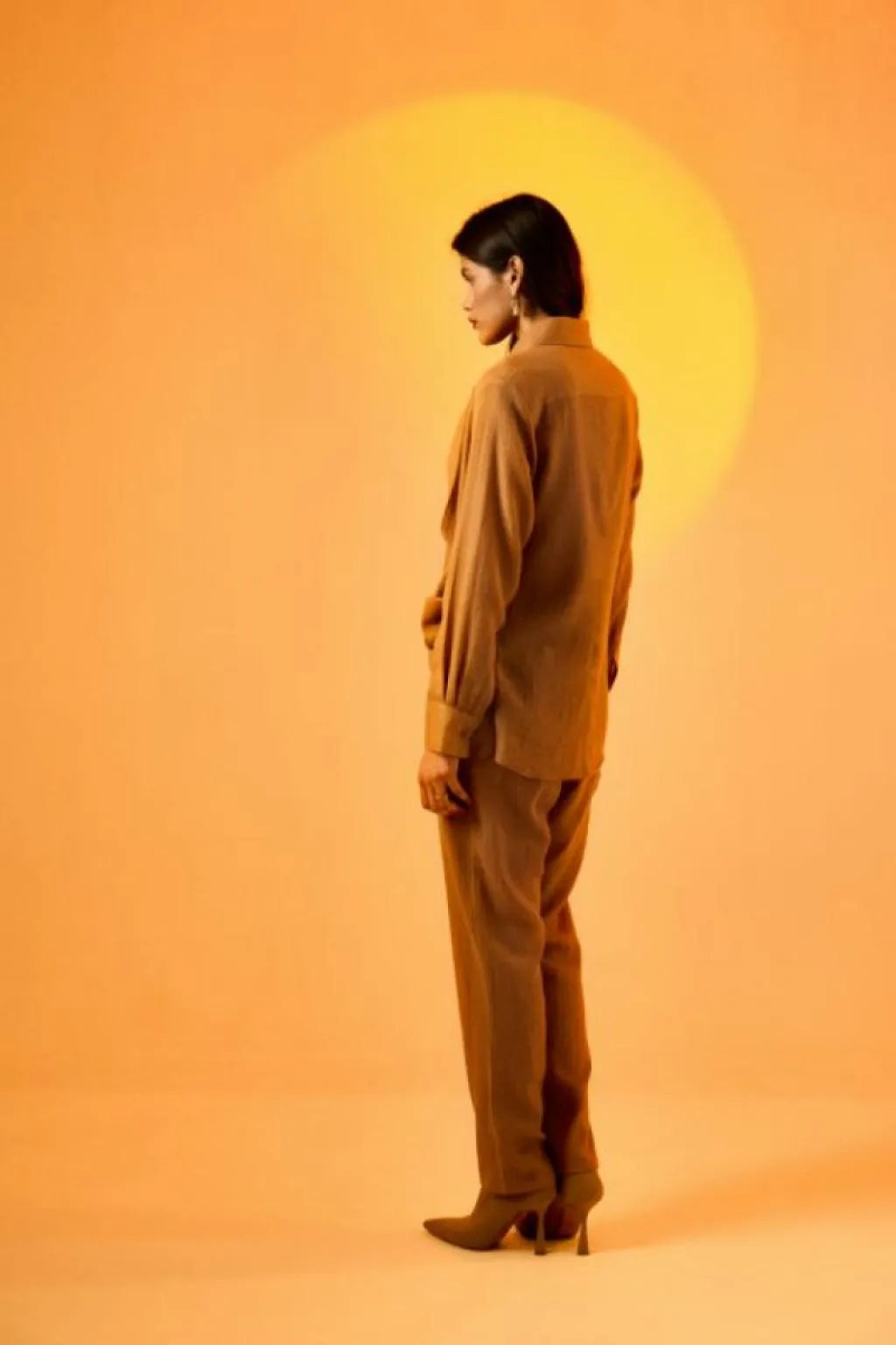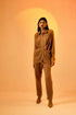 Echo Woolen Cocoa Cord Set is a timeless ensemble that seamlessly marries classic design with modern sophistication. Crafted from pure wool, this set boasts full sleeves, front pleats that elegantly drape on the waist, creating a look that exudes warmth, style, and comfort .A front button down with collar .Embrace the richness of the brown color palette, a versatile and enduring choice that adds depth and character to your wardrobe. The neutral tone makes this set suitable for various occasions and can easily be layered . The breathable and insulating properties of wool ensure that you stay cozy in cooler weather, making it a perfect choice for fall and winter occasions.