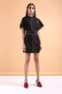 Echo suede dress is an exclusive piece. Made from suede this dress is smart and can be styled many ways. This short Suede dress in black is great for any body type. The dress is fitted on the waist and the sleeves come out from the waist giving it a unique silhouette. With Black lace detail work and thread work adding to the suede dress it is a great mix of materials that look great together. There are tassels on the sleeve for added drama. A functional zipper in the back for easy wear ability. This is a dress that can go with heels or boots and will also look great with a short tassel jacket.