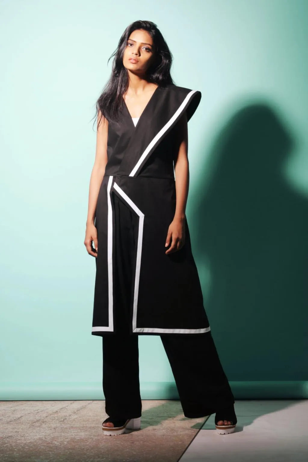 Long black summer jacket Cut from Cotton twill is an elegant and Chic summer wardrobe must have. The white detailing with twill make this piece look every bit luxurious and unique.