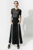 One of a kind front stripe pants with a front slit . The fit is relaxed and the slit makes the pants move beautifully . These pants can be paired with almost anything from a T shirt to a dressy shirt . This is wardrobe essential in 2018 .